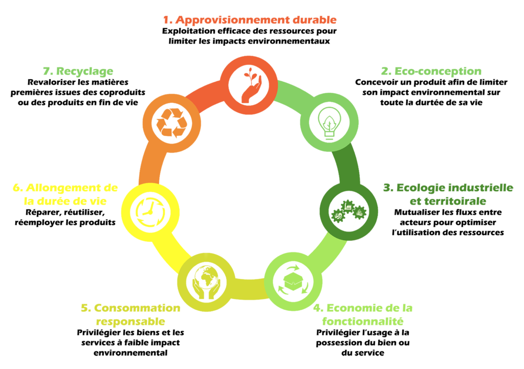 Le modèle des pays développés consistant principalement à extraire, produire, consommer et jeter ne permet plus d’appréhender un futur raisonnable sur ce modèle. Il faut passer à un modèle axé sur une absence de gaspillage et une augmentation de l’intensité de l’utilisation des ressources tout en diminuant les impacts environnementaux. C’est ce que vise l’économie circulaire qui prend en compte trois champs :